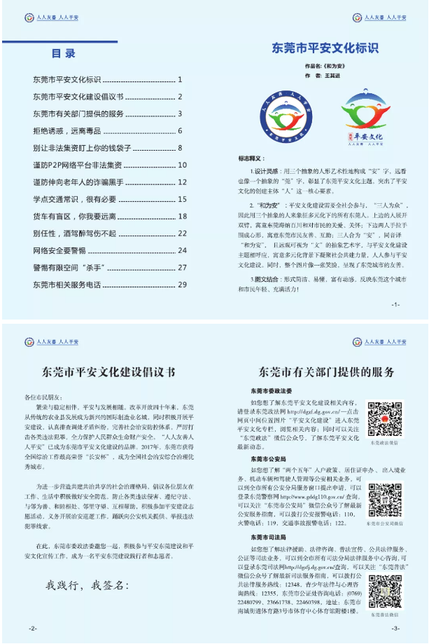 東莞平安文化建設宣傳手冊:人人平安,人人友善